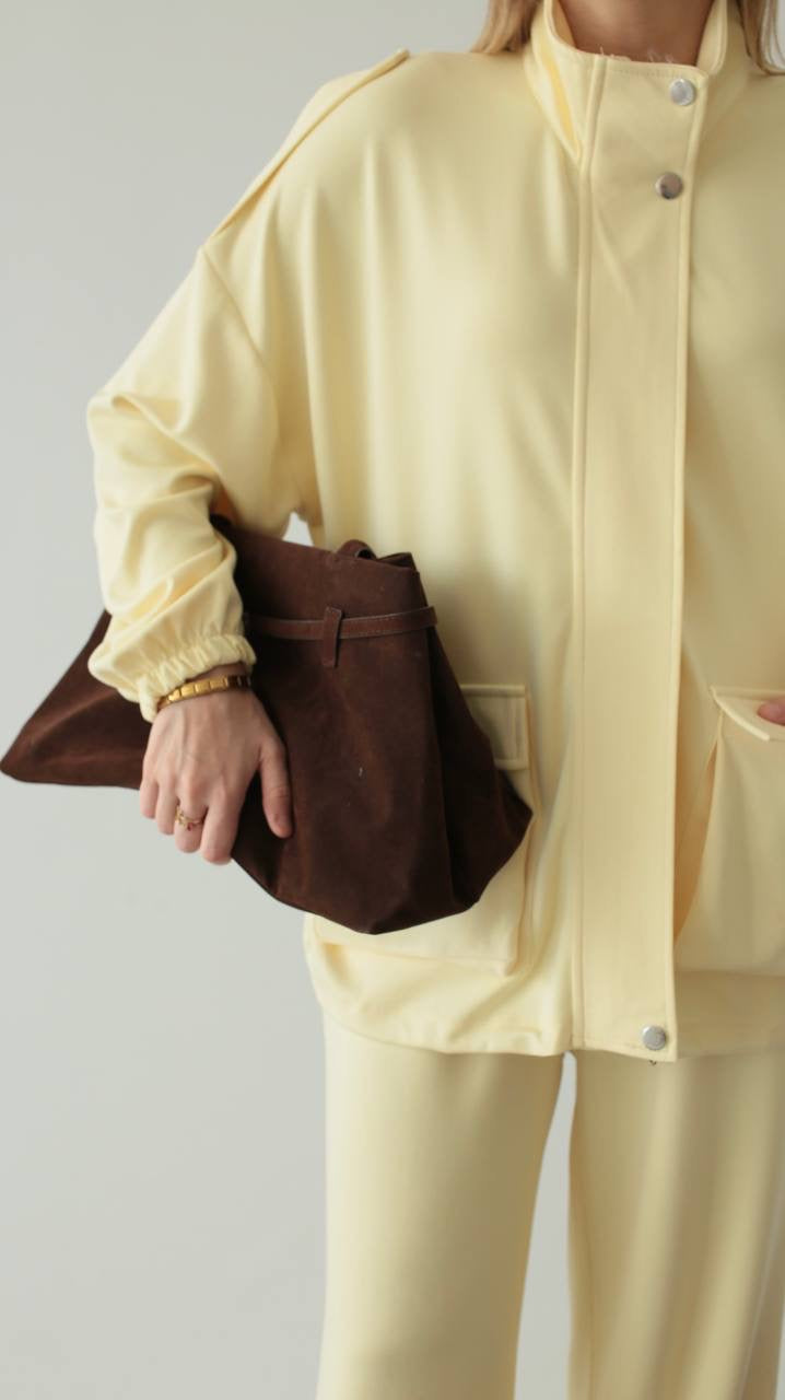 The butter yellow shade brings a subtle glow and refined warmth ideal for your everyday outings with a touch of quiet luxury.