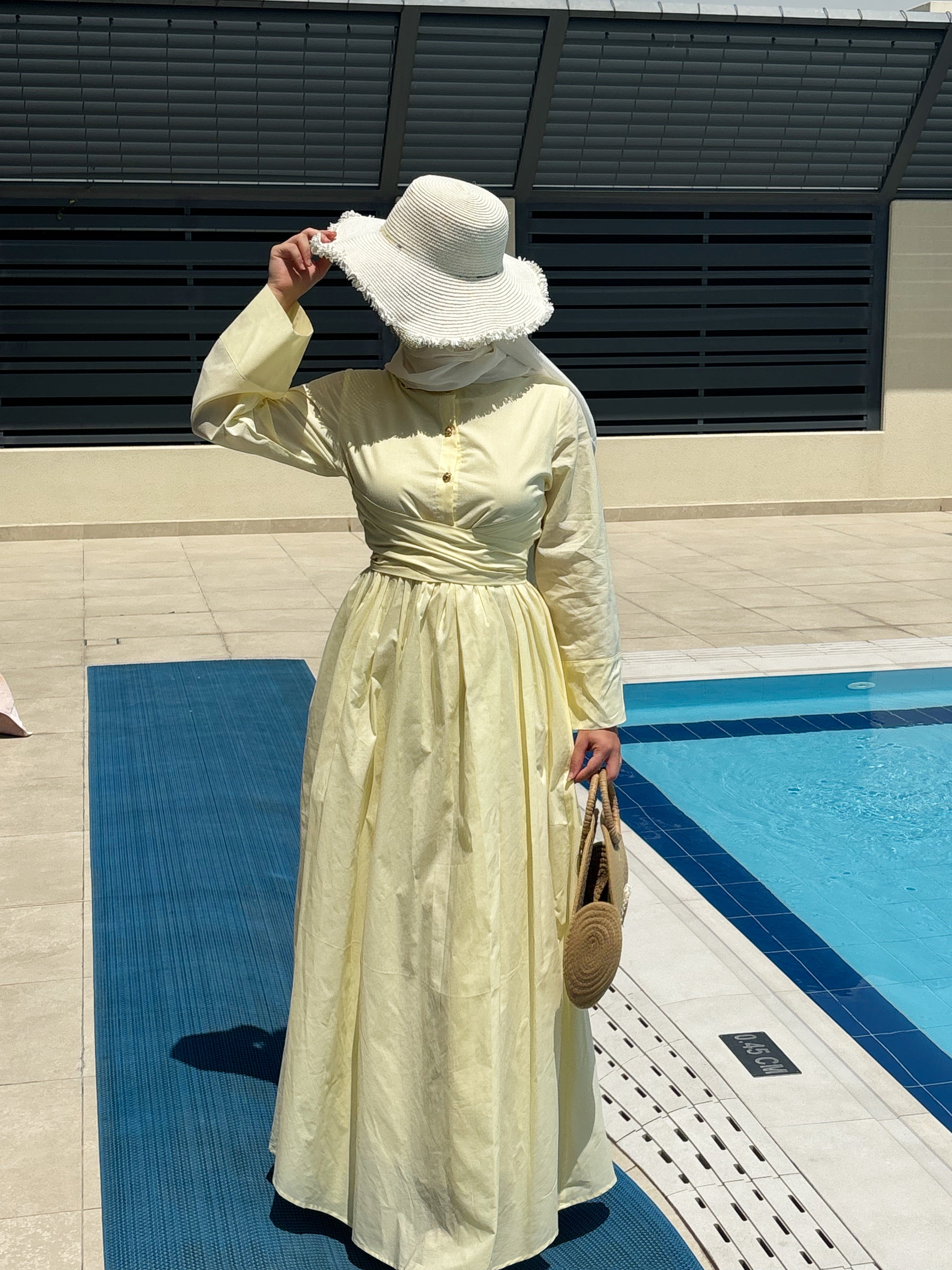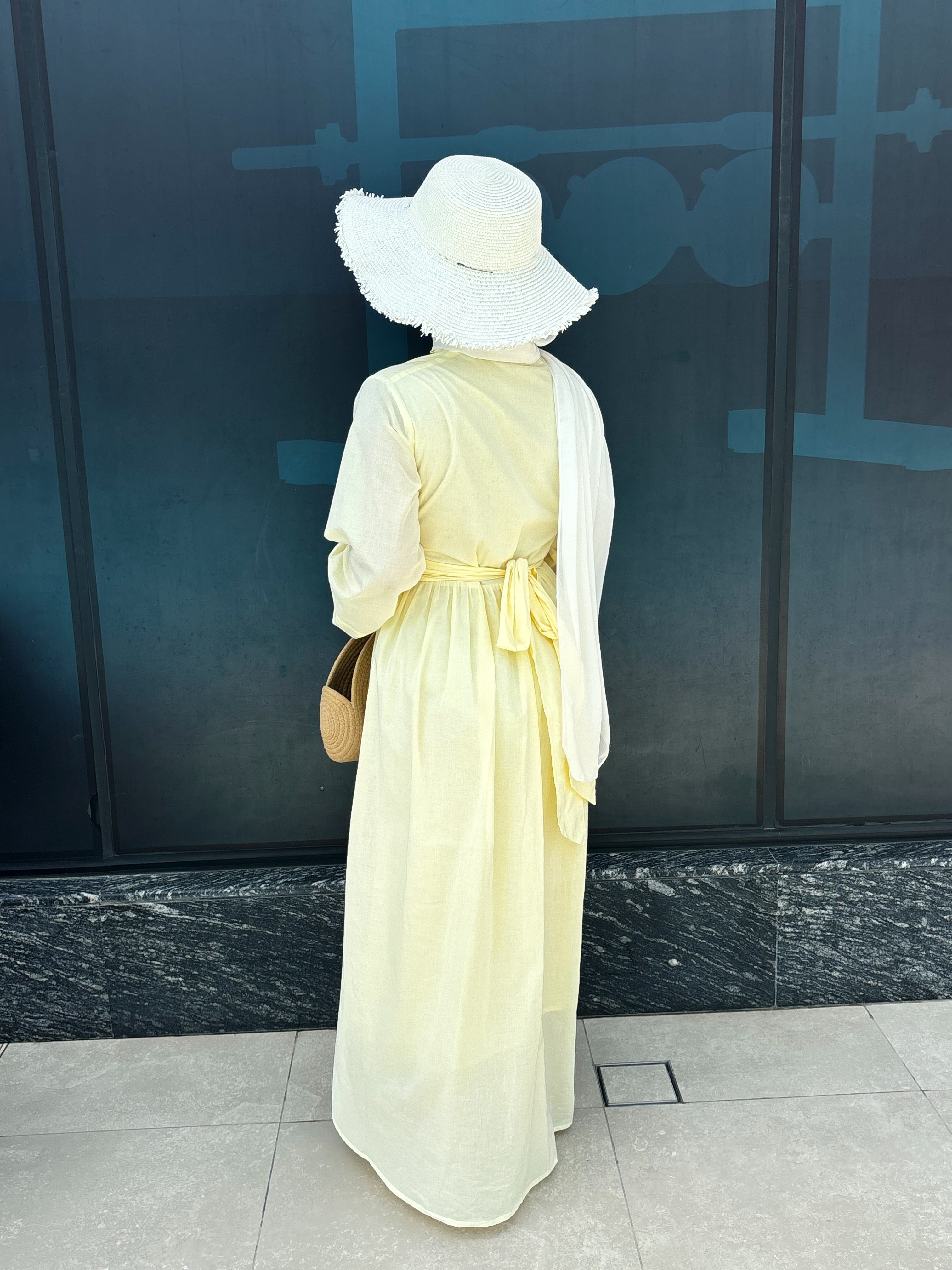 Elevate your summer wardrobe with this effortlessly elegant maxi dress, crafted from lightweight, breathable cotton and fully lined for complete coverage — no transparency guaranteed. The design features a flattering gathered waist, subtle pleats for graceful movement, and delicate front buttons. Its full-length silhouette and long sleeves bring timeless charm and modesty to your look. Perfect for sunny outings, brunches, or beachside strolls — just add a straw hat and you’re ready to glow.